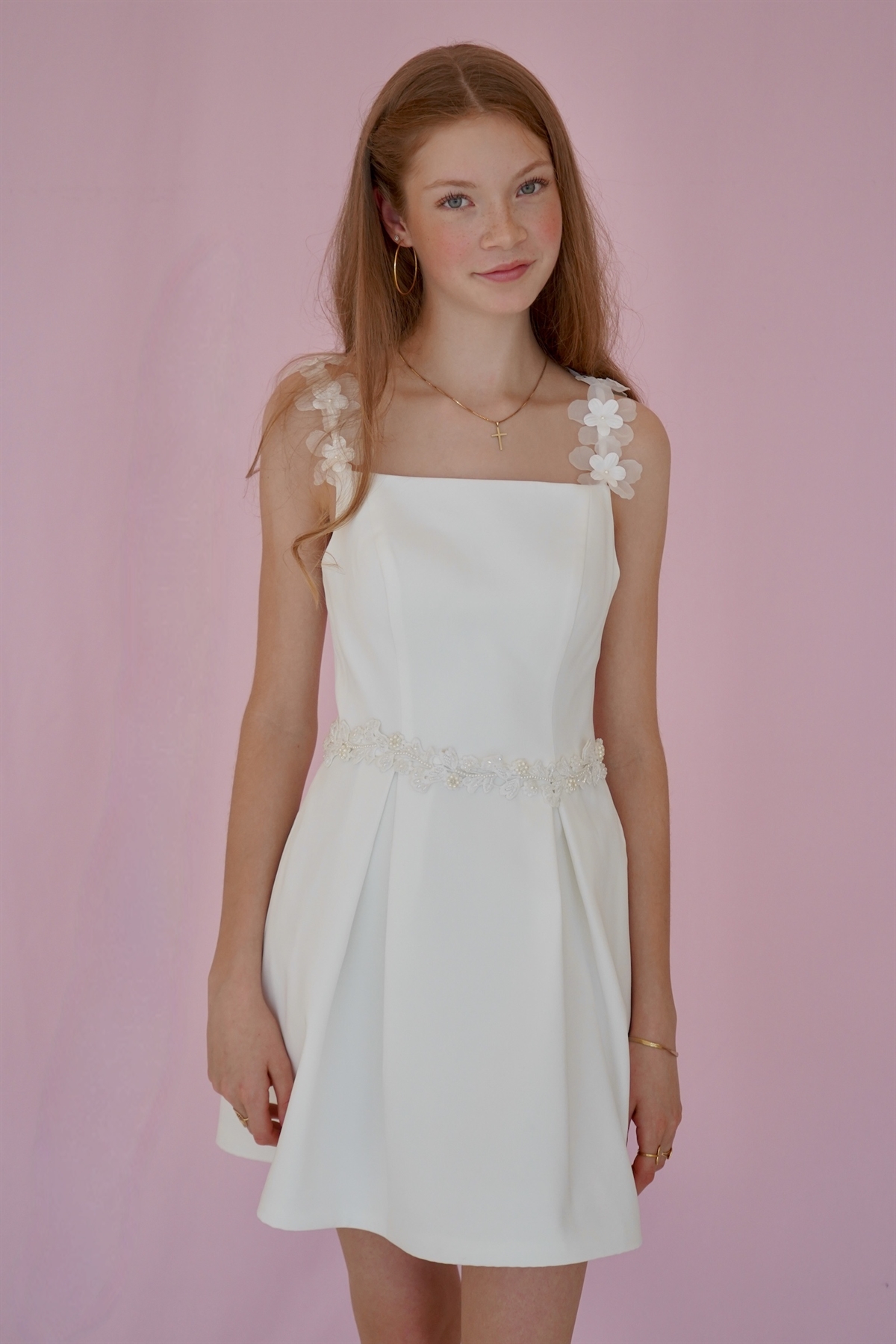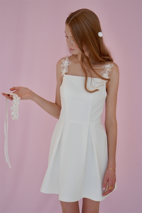 Konfirmationskjole Alma Leveringstid: Marts 2026 Varenr: 2603 Pris 1 Stk.2.999,00 DKK Vælg størrelse Vælg variant 28 30 32 34 36 38 40 42 44 46 48 50 Antal Beskrivelse Spørg til varen Konfirmationskjole Alma i lækker crepe og med smukke blomsterstropper. Alma har et enkelt og stilrent design, som giver dig mulighed for at sætte dit helt unikke præg, i form af tilbehør og styling. Se Alma video fra Catwalken form