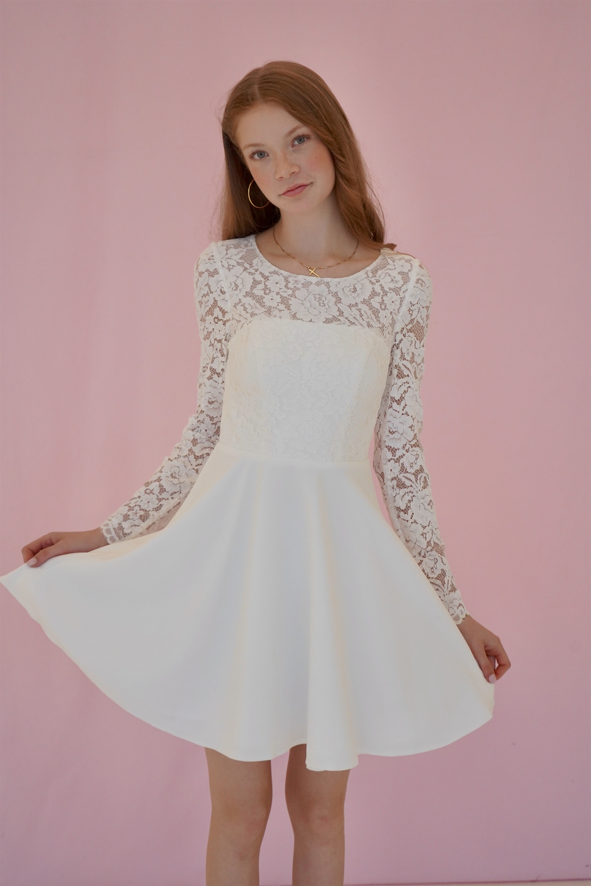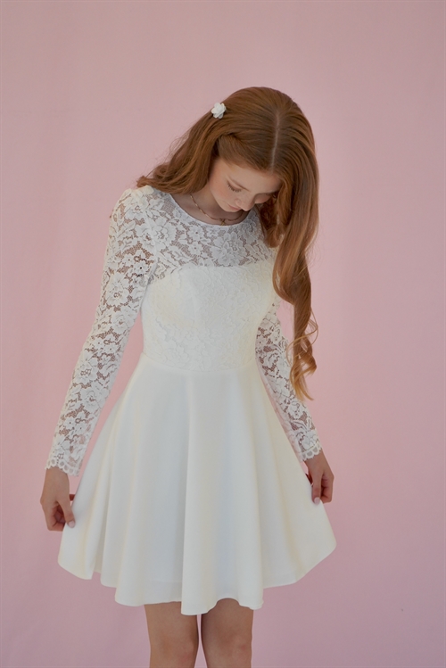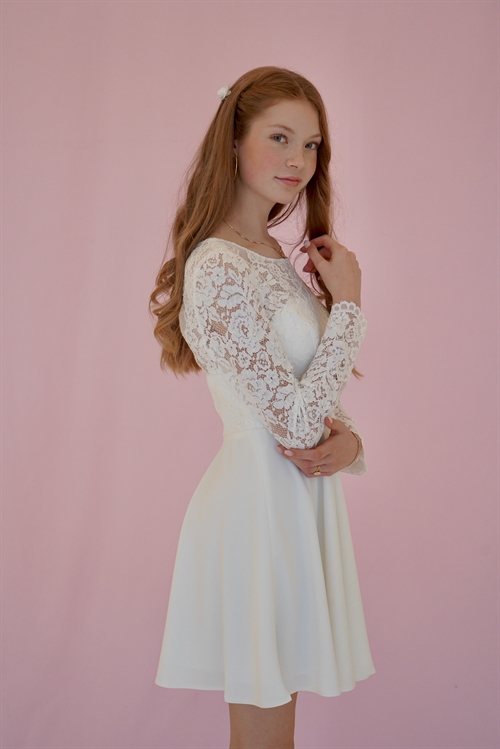 Konfirmationskjole Camilla Leveringstid: Marts 2026 Varenr: 2015 Pris 1 Stk.2.999,00 DKK Vælg størrelse Vælg variant 34 36 38 40 42 44 46 48 Antal Beskrivelse Spørg til varen Konfirmationskjole Camilla i smuk blonde med lange ærmer samt blødt og lækkert crepe skørt Denne konfirmationskjole er en bestillingsvare som kan prøves i vores Butik/Showroom. form Kunder købte også 2.999,00 DKK Konfirmationskjole Mynte