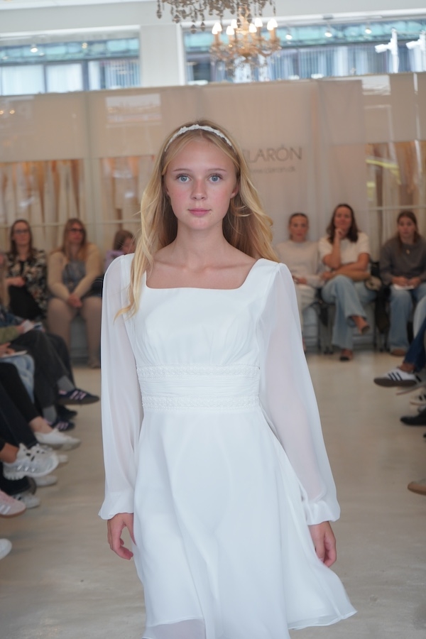 Konfirmationskjoler - Mille med flot blondetajle Leveringstid: Marts 2026 Varenr: 2303 Pris 1 Stk.2.999,00 DKK Vælg størrelse Vælg variant 34 36 38 Antal Beskrivelse Spørg til varen Konfirmationskjole Mille i chiffon med lange ærmer, bådeskæring, smukke blonde detaljer i taljen samt A-facon. Denne konfirmationskjole er en bestillingskjole som kan prøves i vores Butik/Showroom. form