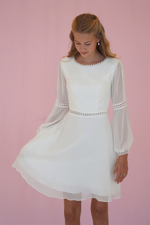 Konfirmationskjole Alberte Leveringstid: Marts 2026 Varenr: 2301 Pris 1 Stk.2.999,00 DKK Vælg størrelse Vælg variant 34 36 38 40 42 44 Antal Beskrivelse Spørg til varen Konfirmationskjole Alberte i chiffon med lange ærmer, fine blondedetaljer i taljen og på ærmer. Denne kjole er en bestillingskjole som kan prøves i vores Butik/Showroom. Se Alberte video fra Catwalken form Relaterede produkter 2.999,00 DKK Konfirmationskjoler - Emily med transparent blondetalje 2.999,00 DKK Konfirmationskjole Karoline 2.999,00 DKK Konfirmationskjole Maja