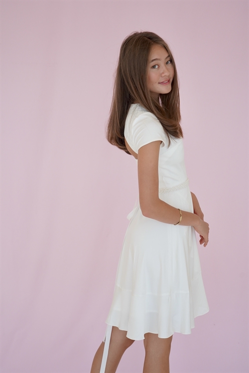 Konfirmationskjole Tilde Leveringstid: Marts 2026 Varenr: 2016 Pris 1 Stk.2.999,00 DKK Vælg størrelse Vælg variant 34 36 38 40 42 44 Antal Beskrivelse Spørg til varen Konfirmationskjole Tilde i blød satin med korte ærmer, jackie-O skæring samt kørt med bælte og flæse. Stilren og enkel konfirmationskjole med den smukkeste ryg. form Kunder købte også 2.999,00 DKK Konfirmationskjole Alba