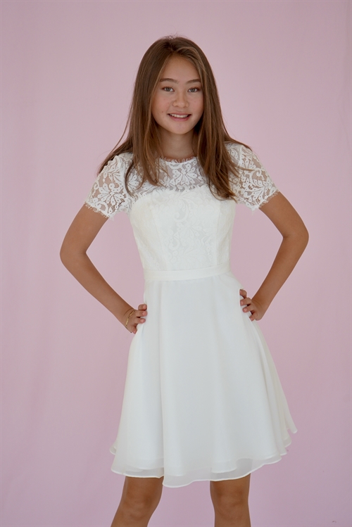 Konfirmationskjoler - Cecilie med skøn åben ryg Leveringstid: Marts 2026 Varenr: 2005 Pris 1 Stk.2.999,00 DKK Vælg størrelse Vælg variant 34 36 38 40 42 44 Antal Beskrivelse Spørg til varen Konfirmationskjole Cecilie i smuk fin blonde med korte ærmer, den smukkeste cirkelformet ryg, og et blødt og lækkert chiffon skørt. DENNE KJOLE ER EN BESTILLINGSKJOLE SOM KAN PRØVES I VORES BUTIK/SHOWROOM form Kunder købte også 499,00 DKK CR52